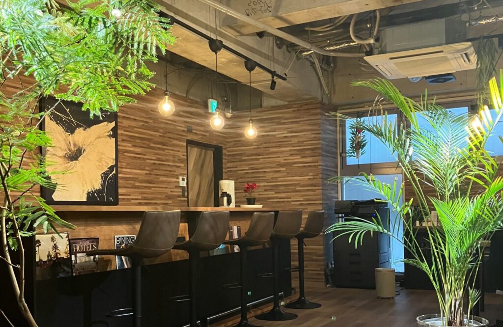 弊社入り口入ってすぐにお出迎えしてくれるGreeeeeeenのボサボサたちです。so!観葉植物「イチ」と「ニィ」です。ww